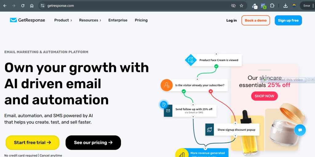 I’ve used GetResponse when I wanted everything under one roof. The automation features are strong, and the funnel builder is genuinely useful if you don’t want to stitch tools together.