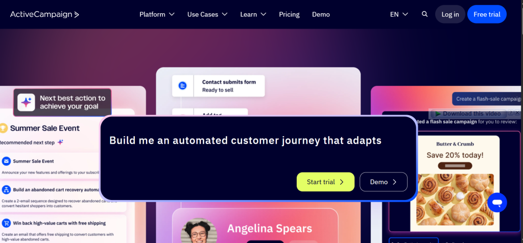 - ActiveCampaign – Best for advanced automation and CRM